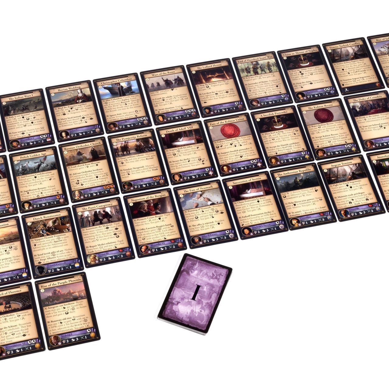 The highly praised Event system ensures that each of the beautifully illustrated�Events have a strong connection to the actual historical events that inspired them, and yet they can play out in a myriad of different ways. This way you get both a high level of immersion and great replayability.